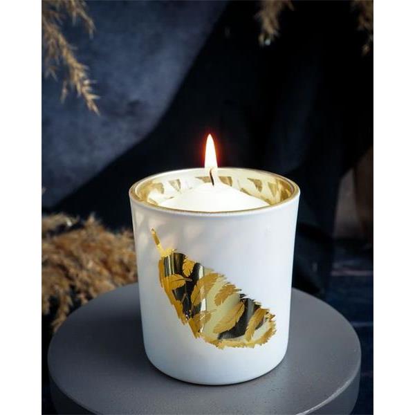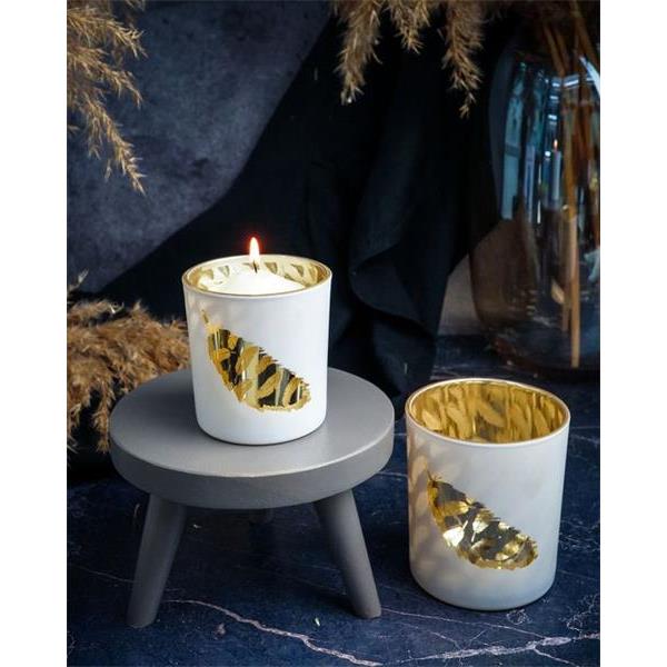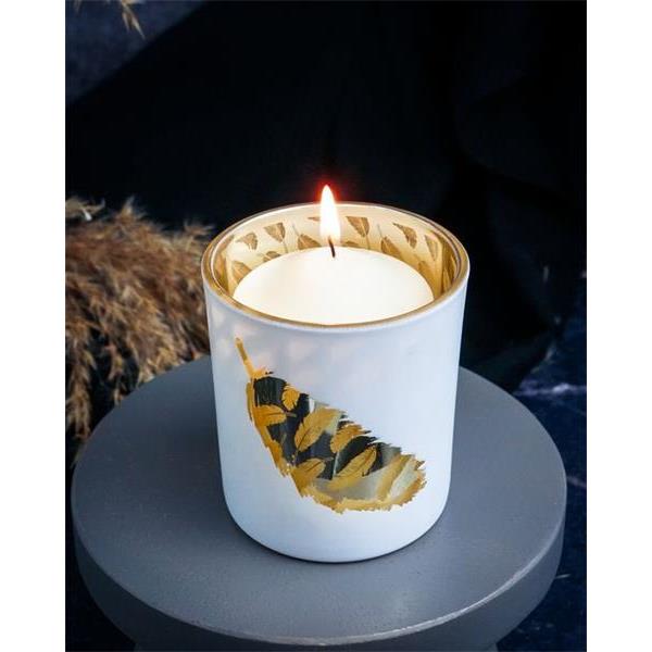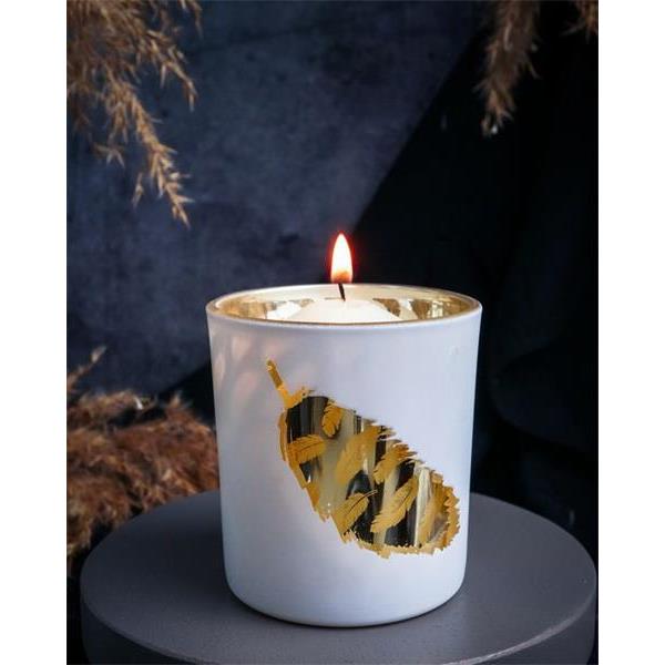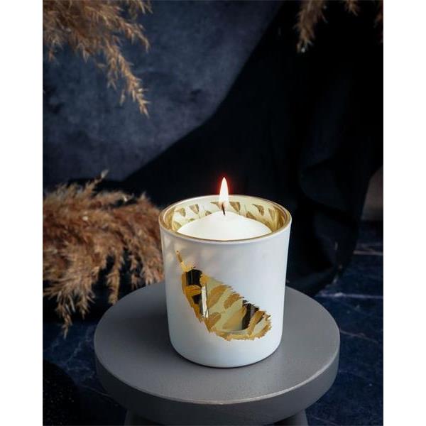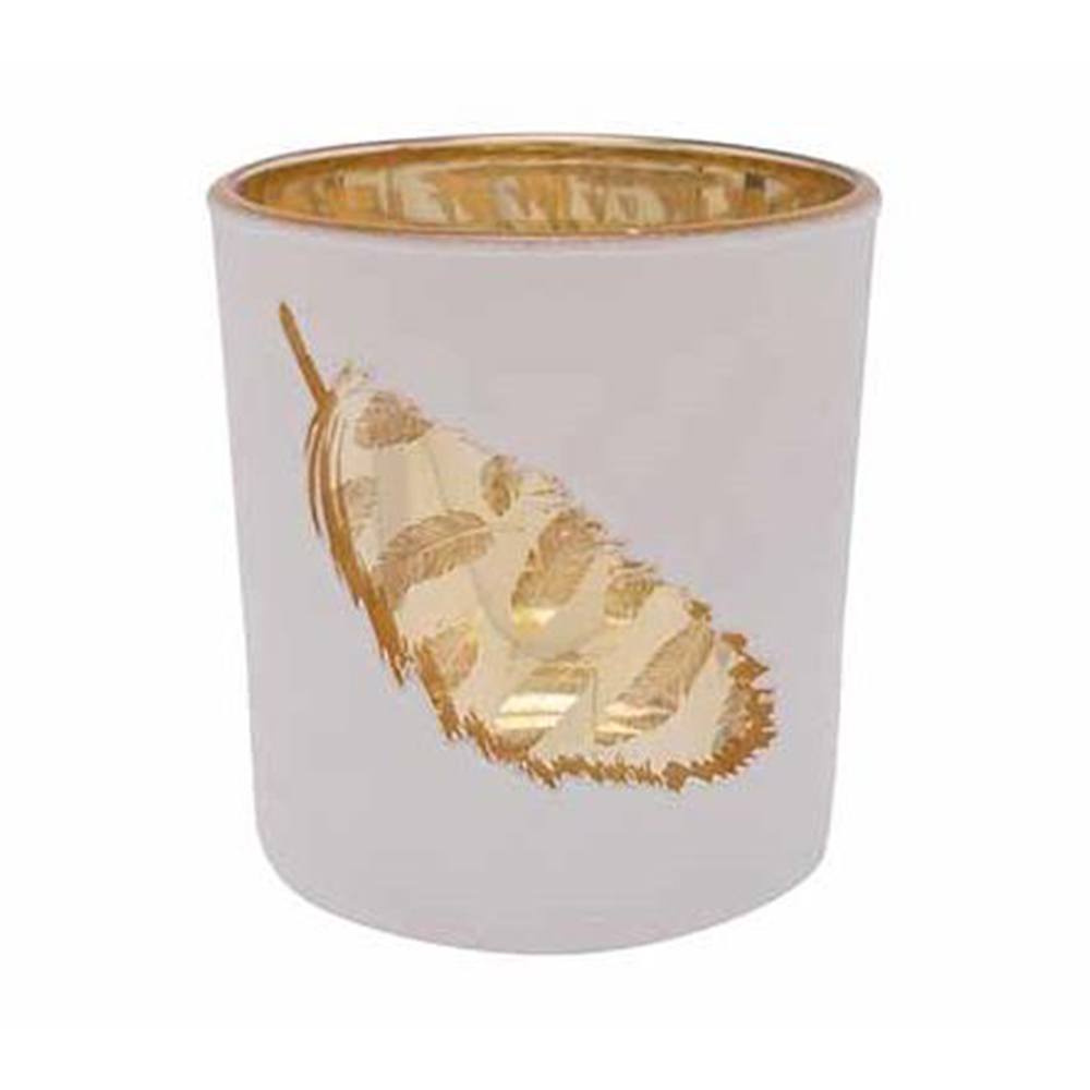 Подсвечник, декор "золотое перо" D7XH8CM, цвет белый, стекло , Cosy & Trendy